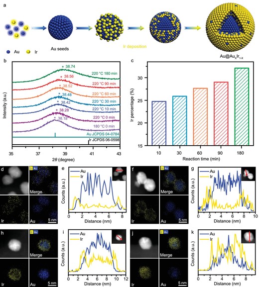 9. Sub-10-nm-sized Au@AuxIr1−x metal-core/alloy-shell nanoparticles as highly durable catalysts for acidic water splitting. Huimin Wang, Zhe-ning Chen, Yuanyuan Wang, Dongshuang Wu*, Minna Cao*, Fanfei Sun and Rong Cao*. Natl Sci Rev, 2024, 11, nwae056.