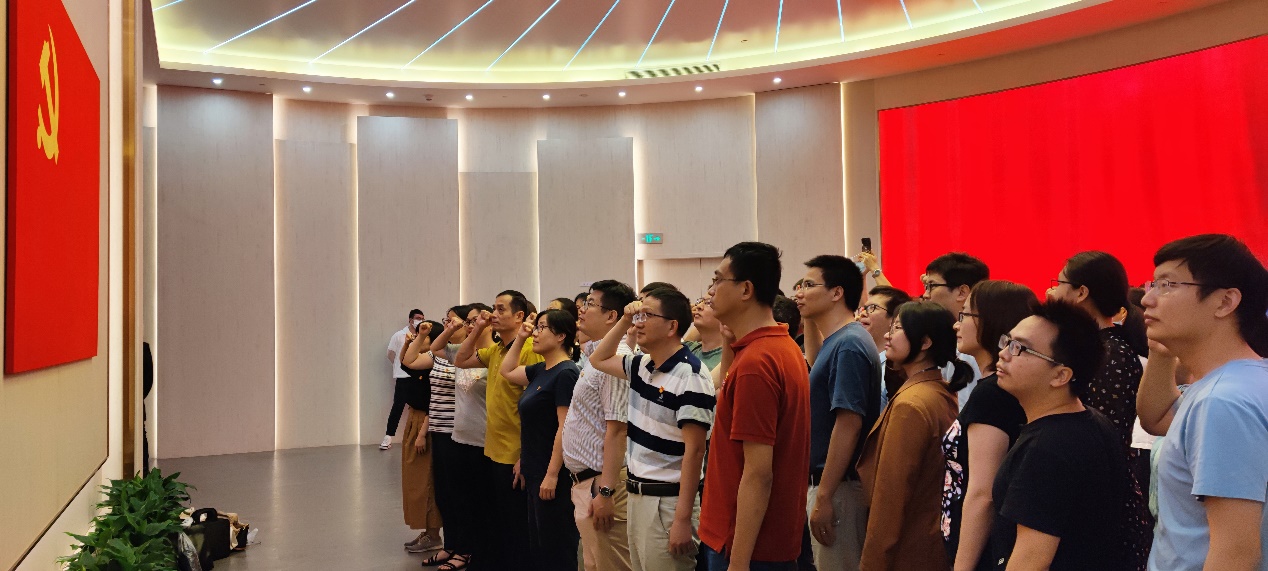 619日上午,两个党总支近50名党员一起走进中国共产党第一次全国代表大会纪念馆,参观《伟大的开端》中国共产党创建历史陈列展览。在讲解员的带领下,党员们瞻仰了中共一大代表群像浮雕,参观了历史选择 伟大起点前仆后继救亡图存民众觉醒 主义抉择等七个专题展区,了解了中国共产党为挽救国家和民族危亡进行的英勇斗争和艰苦探索;最后,在中共一大纪念馆宣誓厅,党员们面对党旗、举起右拳,一起重温入党誓词。
