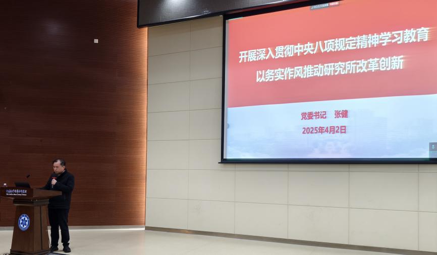 党委书记张健以《开展深入贯彻中央八项规定精神学习教育 以务实作风推动研究所改革创新》为题,围绕中央八项规定精神,深入解读中央八项规定精神的内涵与重要意义,作了深入贯彻中央八项规定精神学习教育动员报告,强调了全所党员干部要将学习贯彻中央八项规定精神作为长期任务,自觉抵制“四风”,以过硬的作风保障研究所改革创新任务的完成。他还部署了研究所2025年度党建工作和党风廉政建设重点工作,要求健全廉政风险防控机制,对重点领域进行监督,同时通报了民主生活会情况和战略研讨会问题整改情况。