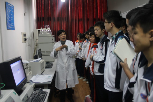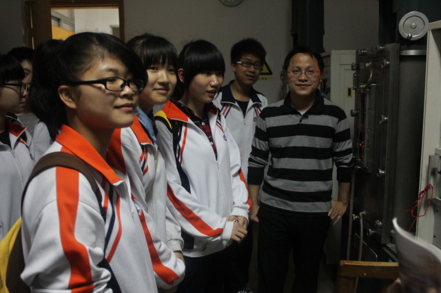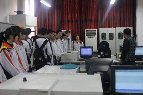 走出纪念陈列室后,学生们参观了晶体生长实验室,了解了晶体的用途和生长的过程,又相继参观了扫描探针显微镜、透射电镜、开放仪器实验室、质谱实验室和场发射透射电镜室。在实验室里,科研人员详细介绍了每台仪器的特点和用途,并同学生们进行现场的交流,回答学生们提出的问题。