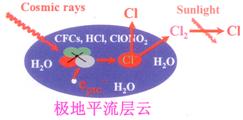 图V. 卢教授提出的“宇宙射线驱使的电子诱导反应(简称CRE)”臭氧洞形成机制。