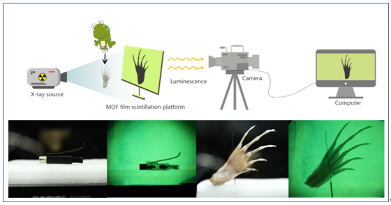 X-射线闪烁体是一类能够将高能X-射线转化为低能量的紫外可见光的辐射探测材料,被广泛应用于医学成像、安全检查、工业探伤、环境监测等领域。传统商用闪烁体(如NaI:Tl、CsI:Tl等)光产额高,但是其易潮解,合成条件苛刻。MOF基闪烁体因其结构可设计、功能可调、合成条件温和等优势,引起材料学家广泛关注。