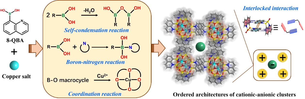 相关研究成果以“In Situ Tandem Synthesis of Charged Boron-Oxo Clusters into Highly-Ordered Architectures”为题发表在Angew. Chem. Int. Ed.上。中国科学院福建物质结构研究所陈剑冰为论文第一作者,张健研究员和张海霞副研究员为共同通讯作者。研究工作获得国家重点研发计划、国家自然科学基金、福建省自然科学基金等项目的支持。
