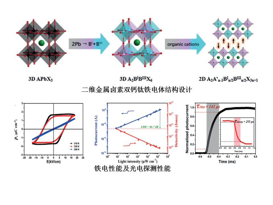 Halide double perovskites have recently emerged as a promising environmentally friendly optoelectronic and photovoltaic material for their inherent thermodynamic stability, high defect tolerance, and appropriate band gaps. However, to date, no ferroelectric material based on halide double perovskites has been discovered. Herein, by hetero-substitution of lead and cation intercalation of n-propylamine, the first halide double perovskite ferroelectric, (n-propylammonium)(2)CsAgBiBr7 (1), is reported and it exhibits distinct ferroelectricity with a notable saturation polarization of about 1.5 mu C cm(-2). More importantly, single-crystal photodetectors of 1 exhibit extraordinary performance with containing high on/off ratios of about 10(4), fast response rates of 141 mu s, and detectivity as high as 5.3x10(11) Jones. This finding opens a new way to design high-performance perovskite ferroelectrics, and provides a viable approach in the search for stable and lead-free optoelectronic materials as an alternative to the lead-containing system.
