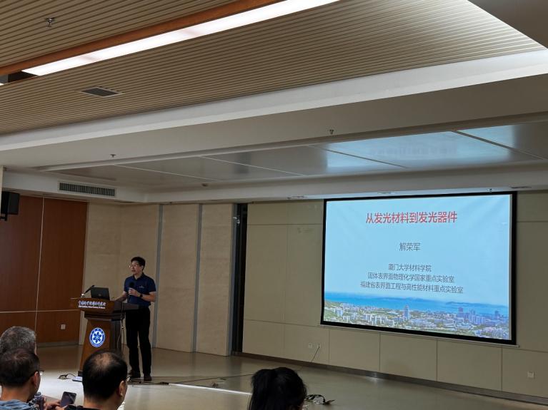 学术交流应功能晶体与器件全国重点实验室和福建省纳米材料重点实验室的邀请,厦门大学材料学院院长解荣军教授于4月27日访问福建物构所,并作了题为“从发光材料到发光器件”的学术报告。解荣军教授介绍了他所领导的研究团队在稀土掺杂氮化物、量子点和有机发光材料的设计、合成和性能优化等方面所开展的应用基础研究,并展示它们在固态照明(LED和LD)和先进显示(LCD、QLED、micro-LED)等发光器件中的应用,此外,解荣军教授还进一步展示了应力响应型发光材料的设计构筑,以及基于应力发光材料对应力动态分布成像和超声波频率探测的实现。讲座结束后,现场师生踊跃提问,就“荧光粉寿命优化”“激光材料产业化挑战”等问题与解教授展开深入探讨。解荣军教授结合自身科研经历,鼓励青年学子立足国家需求,探索材料科学的交叉创新。