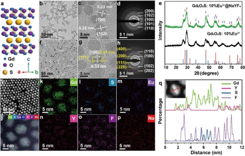 稀土硫氧化物纳米晶因其独特的光学性能,在多模生物成像、纳米闪烁体、光催化等前沿领域具有广阔的应用前景。然而,由于硫的易挥发性以及表面荧光猝灭效应,导致该类材料受限于发光效率低的瓶颈。核壳包覆是提高稀土纳米晶发光效率的一种有效方法,但由于稀土硫氧化物的层状生长习性以及稀土离子与S2–O2–的亲和力差异,传统的同质核壳包覆无法有效提升稀土硫氧化物纳米晶的发光性能。如何制备单分散兼具高效发光的稀土硫氧化物纳米晶仍是稀土发光领域一个亟待解决的难题。