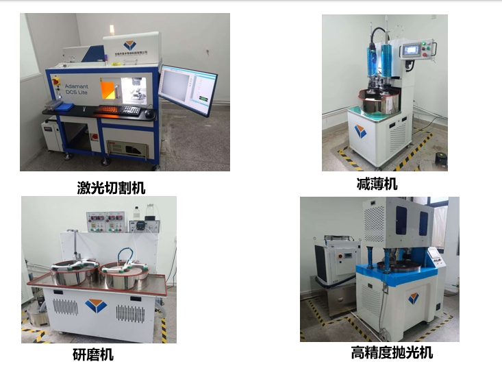 型号规格: (1)切割设备QY-DCS-Lite、(2)减薄设备QY-DL400R、(3)研磨设备QY-DL4T、(4)精密抛光设备QY-DP5-2。