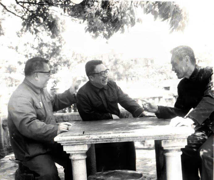 1973年2月,第二次全国固氮学术讨论会期间,(左起)卢嘉锡、唐敖庆、蔡启瑞3人在兴奋地交谈