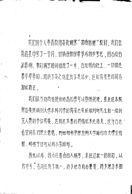 卢嘉锡、唐敖庆、吴征铠、徐光宪四人1957年夏合作编写的我国第一本《物质结构》讲义封面和“序”