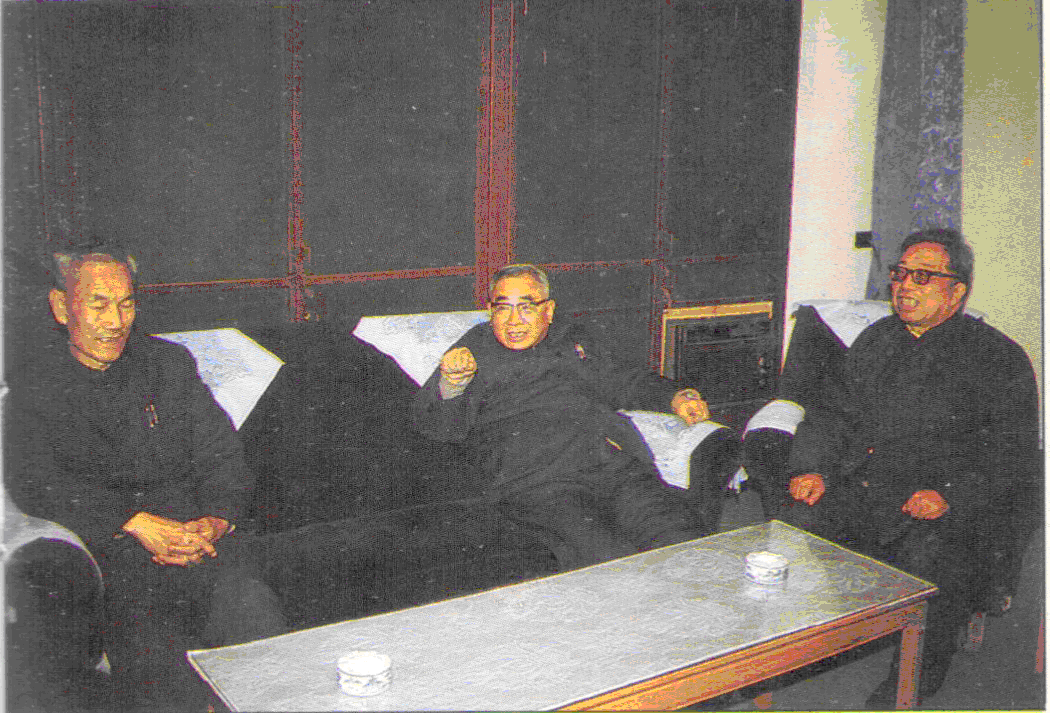 1973年2月,第二次全国固氮学术讨论会期间,(左起)卢嘉锡、唐敖庆、蔡启瑞3人在兴奋地交谈