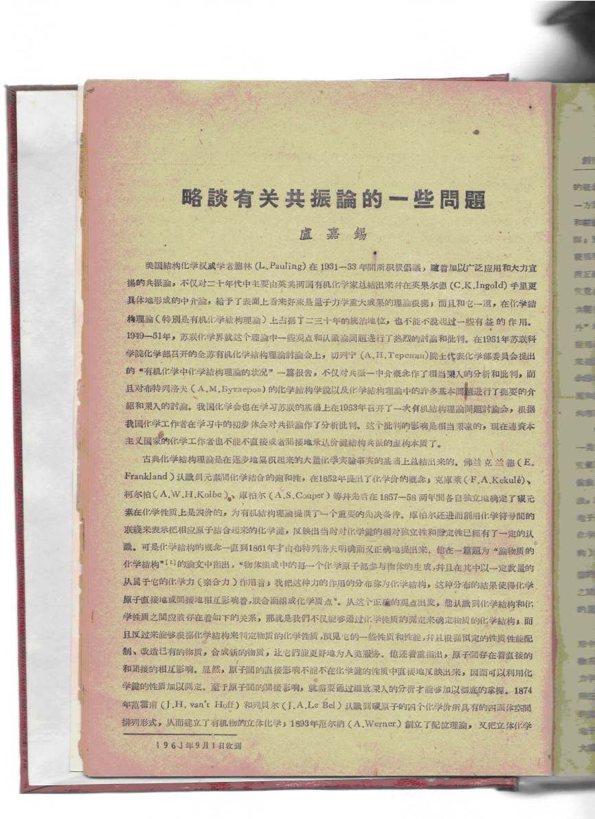 19611128日,《文汇报》第三版转载了卢嘉锡发表在《福州大学学报》的略谈有关共振论的一些问题一文,作为当时有关共振论讨论的总结