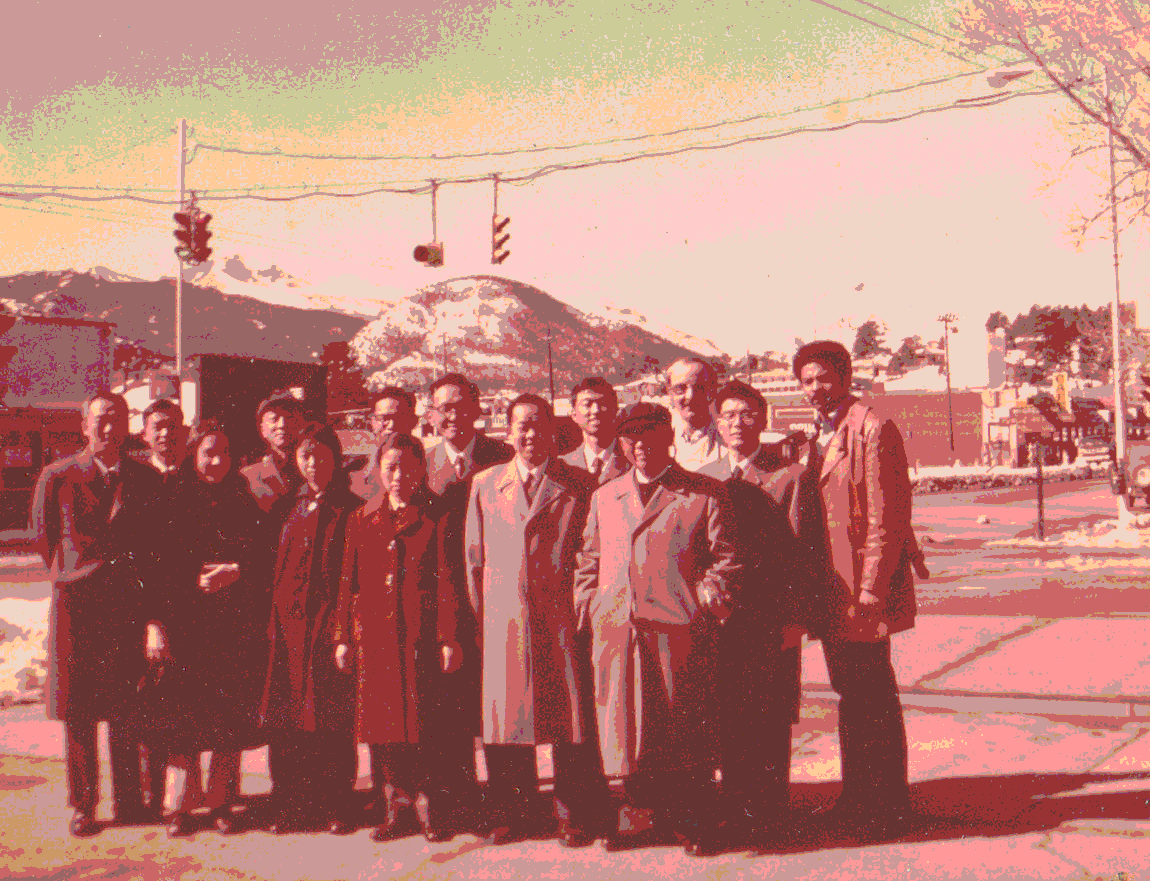 1975年4月,中国科学院固体物理考察组在美国。前右一为卢嘉锡