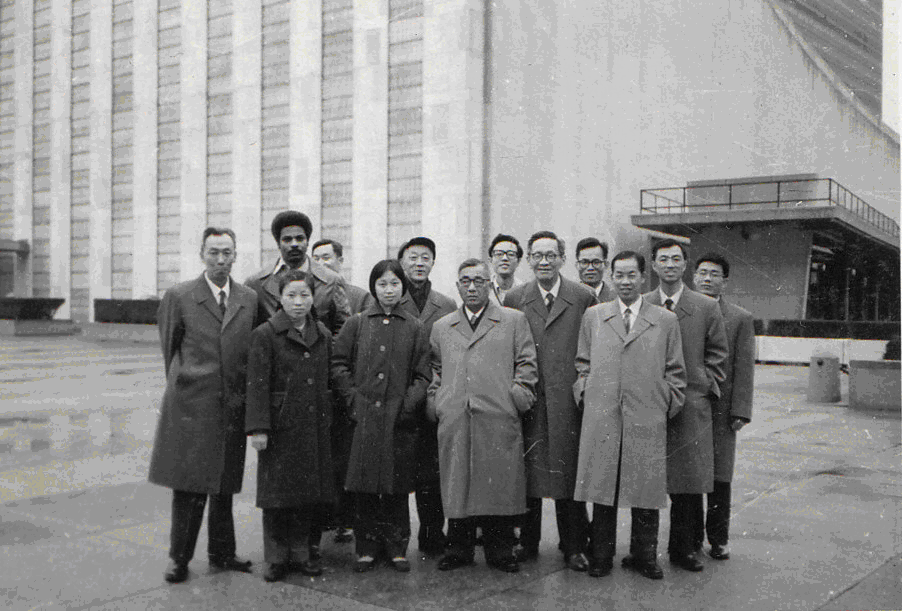 1975年4月,中国科学院固体物理考察组在纽约联合国大厦前。前左三为卢嘉锡