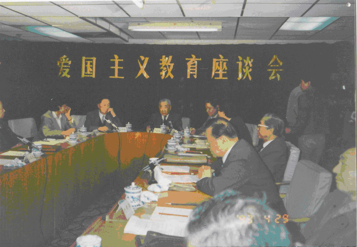 1993年4月29日,中共中央宣传部组织召开爱国主义教育座谈会。图为座谈会现场