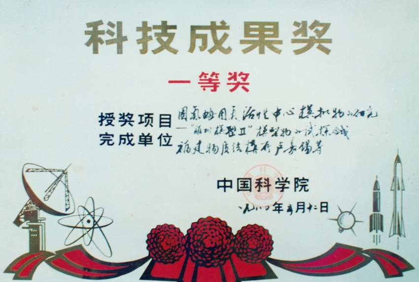 图:卢嘉锡及其带领下的物构所研究团队关于固氮活性中心结构模型的研究先后获得中国科学院重大科技成果奖和中科院科技成果奖一等奖。