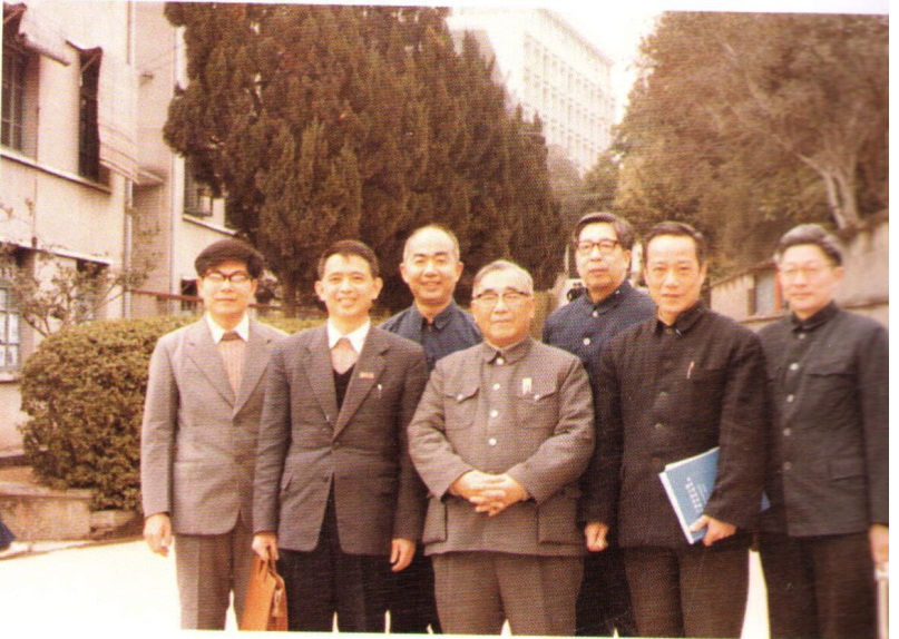 物构所培养的第一个博士生商茂虞答辩后合影。左起商茂虞、黄金陵、江元生、卢嘉锡、梁敬魁、梁栋材、邵美成