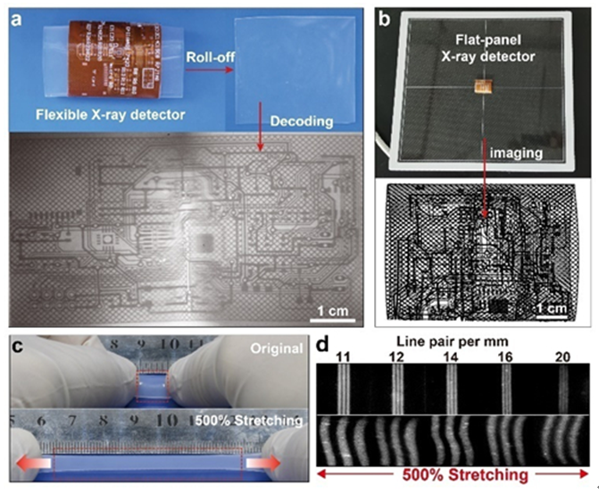 X射线影像技术在医学诊断、安全检查、工业无损探伤上具有广泛而重要的应用。目前,大多数X射线平板探测器需要集成薄膜晶体管阵列(TFT)、非晶硅光电转换层和闪烁体。但制造大面积、柔性的薄膜晶体管阵列和非晶硅光电转换层仍存在巨大的技术挑战,因此难以实现柔性平板探测器的制造,而使用刚性的平板探测器无法实现曲面或者不规则目标物的三维X射线成像。