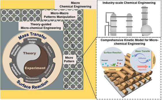 鉴于此,中国科学技术大学俞书宏院士团队与侯中怀教授合作,提出了一种在纳米催化剂修饰的电极表面上耦合传质过程和表面反应的全动力学模型,以探索和阐明非均相电催化过程中的动力学优化(图1)。该项研究成果以“Microchemical Engineering in a 3D Ordered Channel Enhances Electrocatalysis”为题,近日在线发表在《美国化学会志》杂志上(J. Am. Chem. Soc. 2021,DOI: 10.1021/jacs.1c04653)。