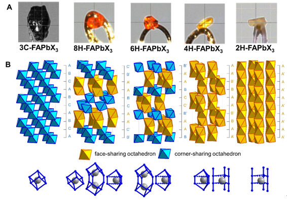 该研究团队通过在FAPbI3体系引入溴离子,捕获到其相变过程中三个具有新相结构的中间体。结合单晶结构分析和理论计算,发现钙钛矿铅卤八面体结构演化过程和阳离子的填充规律严格地遵循离子晶体所适用的鲍林规则。通过提高共顶点卤素的含量与立方体笼子的含量就可以有效地提升钙钛矿相的结构稳定性。作者表示,该研究揭示了氯、溴、铯和甲胺在抑制甲脒基钙钛矿相变过程中的关键作用,为制备高效且稳定的钙钛矿太阳能电池提供了重要指导和新的研究思路。