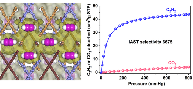 图1. HOF-FJU-1负载乙炔结构图及其吸附性能