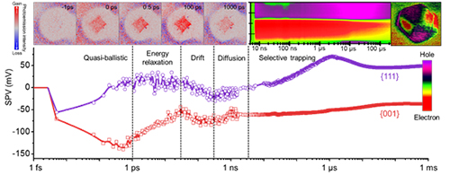 太阳能光催化反应可以实现分解水产生氢气、还原二氧化碳产生太阳燃料,是科学领域“圣杯”式的课题,受到全世界关注。虽然人们在光催化剂制备和光催化反应研究方面做出了巨大的努力,但由于光催化反应中光生电荷的分离、转移和参与化学反应的时空复杂性,人们对其基本微观过程一直不清楚。