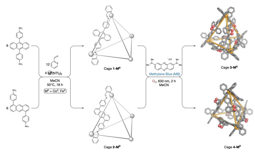 图3. 笼中的蒽(显示2-CoII)与光生1O2的反应可能会刺激结合客体的释放