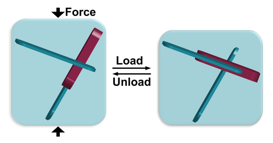 近日,北京理工大学姚子硕研究员基于压力作用下分子取向变化与超弹性质的结构关联出发,设计合成了新的晶态分子“陀螺”——(3,5-二甲基苯甲酸)-(4,4’-联吡啶)-(3,5-二甲基苯甲酸),利用4,4’-联吡啶在剪切力作用下绕氢键的旋转,实现了单晶的超弹形变,并首次发现了线二色性光学信号的受力可逆反转。