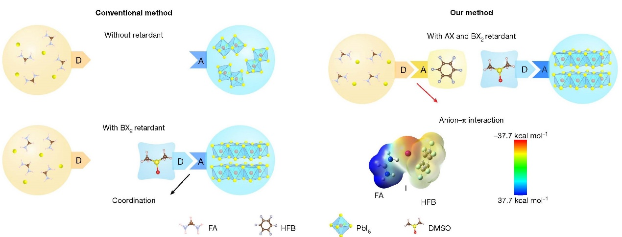 使用阴离子- 相互作用与AX结合调控生长示意图,及其与传统方案对比。图来源:Nature
