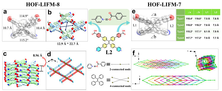 图2. HOF-LIFM-8和HOF-LIFM-7的晶体结构示意图