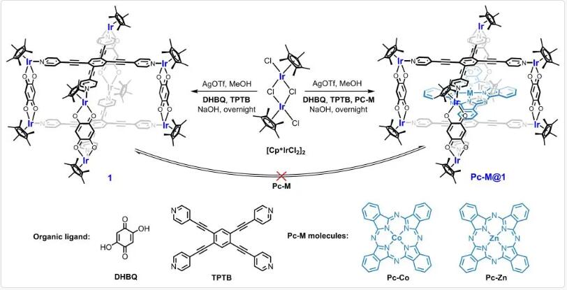 图1. 金属笼1和超分子催化剂Pc-M@1的合成路线