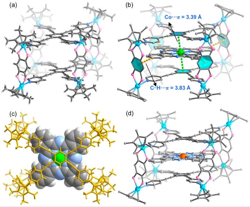 受到自然界酶的启发,通过合理设计超分子笼,使其充当包裹目标分子催化剂的容器,可以防止分子催化剂失活。在主-客体加合物中,分子催化剂活性位点可以完全被隔离在配位笼的纳米空腔中,进而阻止其自身的聚集。