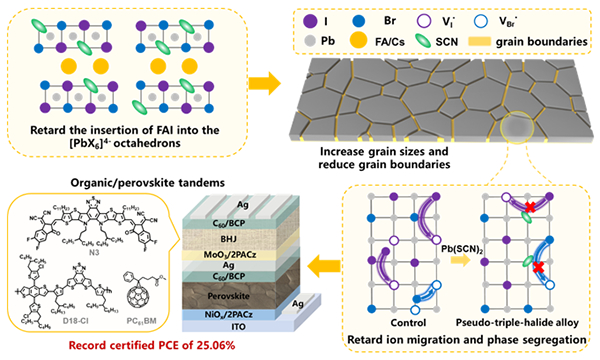 图 拟卤素调控结晶、抑制离子迁移与相分离过程及有机/钙钛矿叠层电池性能
