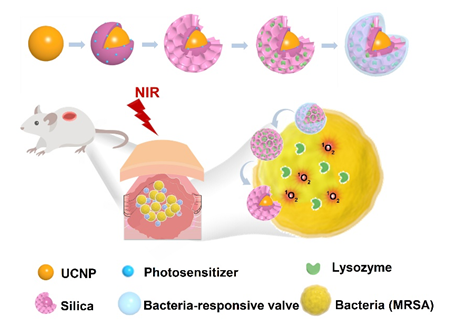 图1:基于智能上转换纳米平台的溶菌酶-光动力协同抗深层组织耐药菌感染示意图