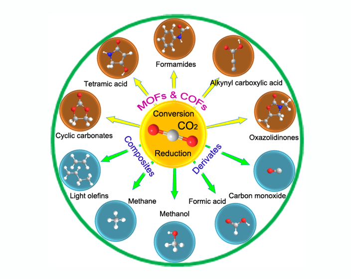 近年来,福建物构所结构化学国家重点实验室曹荣研究员和黄远标研究员,在科技部重点研发计划、国家自然科学基金项目、中科院青年创新促进会优秀会员项目等支持下,在多孔框架材料用于催化转化CO2的研究中取得了系列进展。近期,该团队应邀在EnergyChem上发表了题为“Reticular frameworks and their derived materials for CO2 conversion by thermo—catalysis”的综述论文。该文系统综述了多孔框架材料及其衍生材料在热催化转化CO2反应中的应用,总结了网络框架催化剂的结构优势及合成策略、应用于具体催化反应的标志性成果以及机理等,并在此基础上提出了新的研究观点和对未来发展趋势的展望。综述涉及框架催化剂的金属活性中心、功能有机官能团、主-客体杂化材料之间的协同催化,以及衍生碳材料或金属氧化物负载型催化剂的协同催化等方面的内容。这对发展应用于CO2资源化利用的新型网络框架基催化剂的设计及合成具有重要的参考价值。