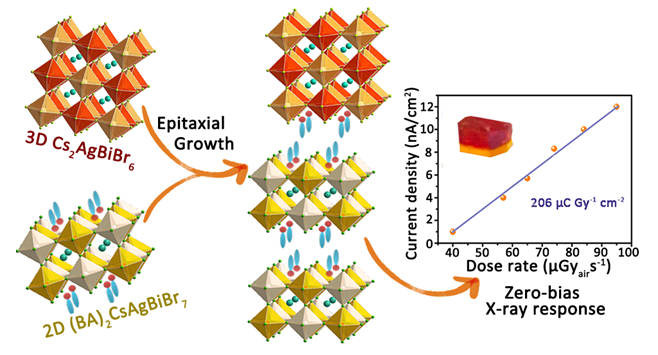 图:外延生长非铅双金属杂化钙钛异质结晶实现自驱动X射线探测