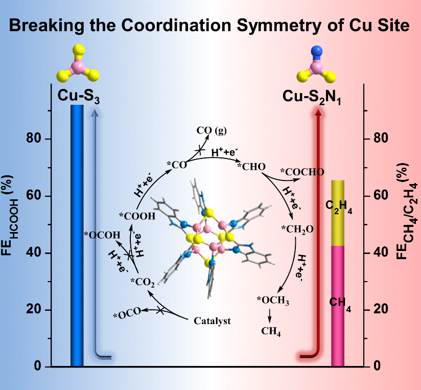 图1. 打破精确Cu簇配位原子对称性改变产物分布