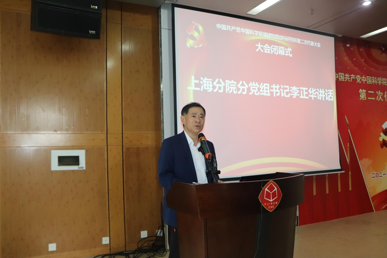 李正华代表上海分院分党组讲话。他对上一届党委、纪委班子的辛勤努力和付出表示感谢,并对新一届党委、纪委班子提出希望和要求:一是要在突出政治功能上下功夫。希望所党委要以习近平新时代中国特色社会主义思想为指导,坚持党对科技事业的领导,坚持加强党的建设与科技创新中心工作深度融合,按照“围绕创新抓党建、抓好党建促创新”的理念推动研究所科技创新、科学发展,努力按照习近平总书记提出的“四个率先”和“两加快一努力”的目标要求,发挥好党委参与决策、推动发展、监督保障的作用,发挥好党委政治引领、政治把关的作用,切实履行好新时代国家战略科技力量的责任和使命。二是要在提升基层组织力上下功夫。希望所党委要按照中央提出的党史学习教育的要求,利用支部建在实验室等工作载体,着力推动政治功能强、支部班子强、党员队伍强、作用发挥强的“四强”支部建设,努力提升党建质量和成效,着力增强基层党组织的创造力、凝聚力、战斗力,切实发挥好党组织和广大党员的战斗堡垒作用和先锋模范作用。三是要在大力推动干部队伍建设、人才战略发展上下功夫。希望所党委要加强班子自身建设、中层干部队伍建设、后备干部队伍建设和党务干部队伍建设,形成合力为研究所的发展提供支撑和保障,真正能够使人才引得来、留得住、用得好,为人才成长提供一个好的事业发展平台,努力营造良好的成长氛围,为聚焦国家战略需要作出贡献。四是要在深入推进创新文化建设上下功夫。要践行科技创新服务国家、造福人民的科学价值观,传承好卢嘉锡等老一辈科学家精神,弘扬他们赤子报国的爱国情怀、严谨求实开拓创新的科学精神和敢为人先奖掖后人的育人精神。五是要在推进全面从严治党向基层延伸上下功夫。要履行好党委的主体责任、纪委的监督责任和每位骨干的一岗双责职责,强化守土有责、守土担责、守土尽责的政治担当,以严实的作风将全面从严治党的各项要求落到实处,以全面从严治党新成效推进研究所科学管理、依法治所能力和水平的提升,为研究所的发展营造风清气正的科研环境。最后,李正华指出,站在新的历史起点上,物构所面临着新的任务和挑战,希望新一届班子要以习近平新时代中国特色社会主义思想为指导,牢固树立“四个意识”、坚定“四个自信”、做到“两个维护”,守初心担责任,以党的建设的质量与成效来促进和引领研究所的跨越发展,按照院工作会议精神,真正成为“国家队”、“国家人”,心系“国家事”,肩扛“国家责”,为实现科技强国作出创新性的贡献,以优异的成绩迎接建党100周年。