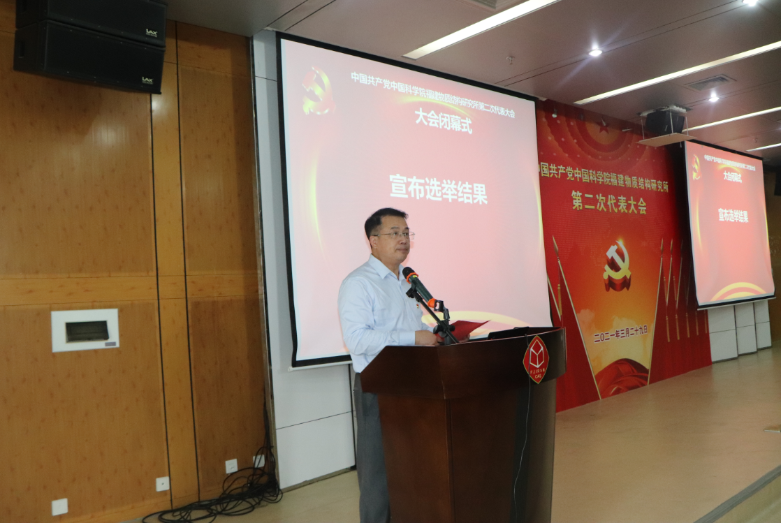 2021年3月29日,中国共产党中国科学院福建物质结构研究所第二次代表大会在福州胜利召开。上海分院分党组书记李正华、福建省委组织部二级调研员车延萍以及上海分院组织人事处副处长(主持工作)胡嘉、朱泰来、孙强等同志出席大会。研究所行政班子成员和民主党派代表等受邀列席会议。