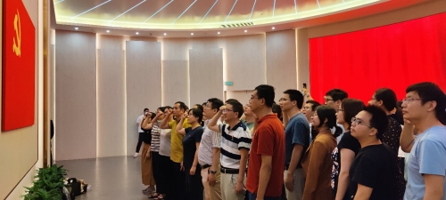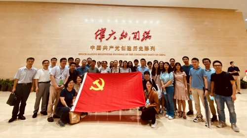 6月19日上午,两个党总支近50名党员一起走进中国共产党第一次全国代表大会纪念馆,参观《伟大的开端》中国共产党创建历史陈列展览。在讲解员的带领下,党员们瞻仰了中共一大代表群像浮雕,参观了 “历史选择 伟大起点”、 “前仆后继救亡图存”、 “民众觉醒 主义抉择”等七个专题展区,了解了中国共产党为挽救国家和民族危亡进行的英勇斗争和艰苦探索;最后,在中共一大纪念馆宣誓厅,党员们面对党旗、举起右拳,一起重温入党誓词。