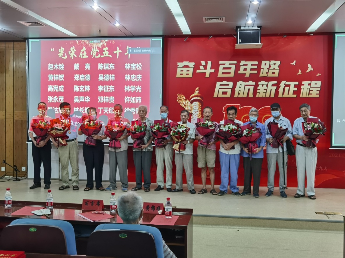 有着51年党龄的退休职工黄呈辉同志代表“光荣在党50年”及受表彰老党员作报告。他结合自己的党史学习经历,谈了党员要学党史、知党情、感党恩、强党性、跟党走等“五个要”的学习体会和感悟。他说,虽已年近古稀,但作为一名老党员,仍要常怀爱党之心、为党之责、强党之志,为党的事业继续发挥余热,老有所为,利用好离退休老同志的服务平台,为民多做好事、多办实事,继续为党的事业奋斗终身。