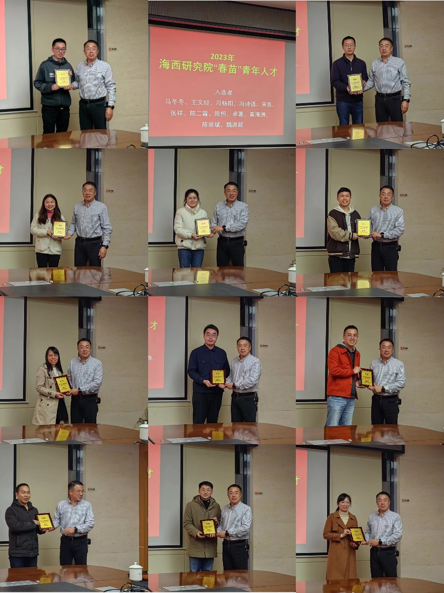 王欣处长介绍了海西院“春苗”等青年人才计划在加强青年人才培养方面所发挥的积极作用。她希望物构所青年人才要继续奋斗,争取更大的进步。黄艺东书记为12位2023年度海西院“春苗”青年人才计划入选者颁发了奖牌。