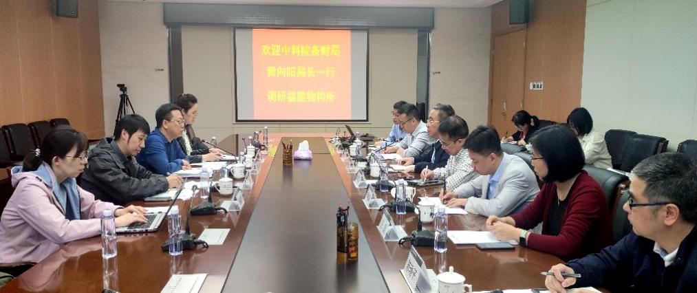 2023年4月24日,中国科学院条件保障与财务局局长黄向阳携资金绩效监管处及资产财务处负责同志来到福建物构所开展工作调研。