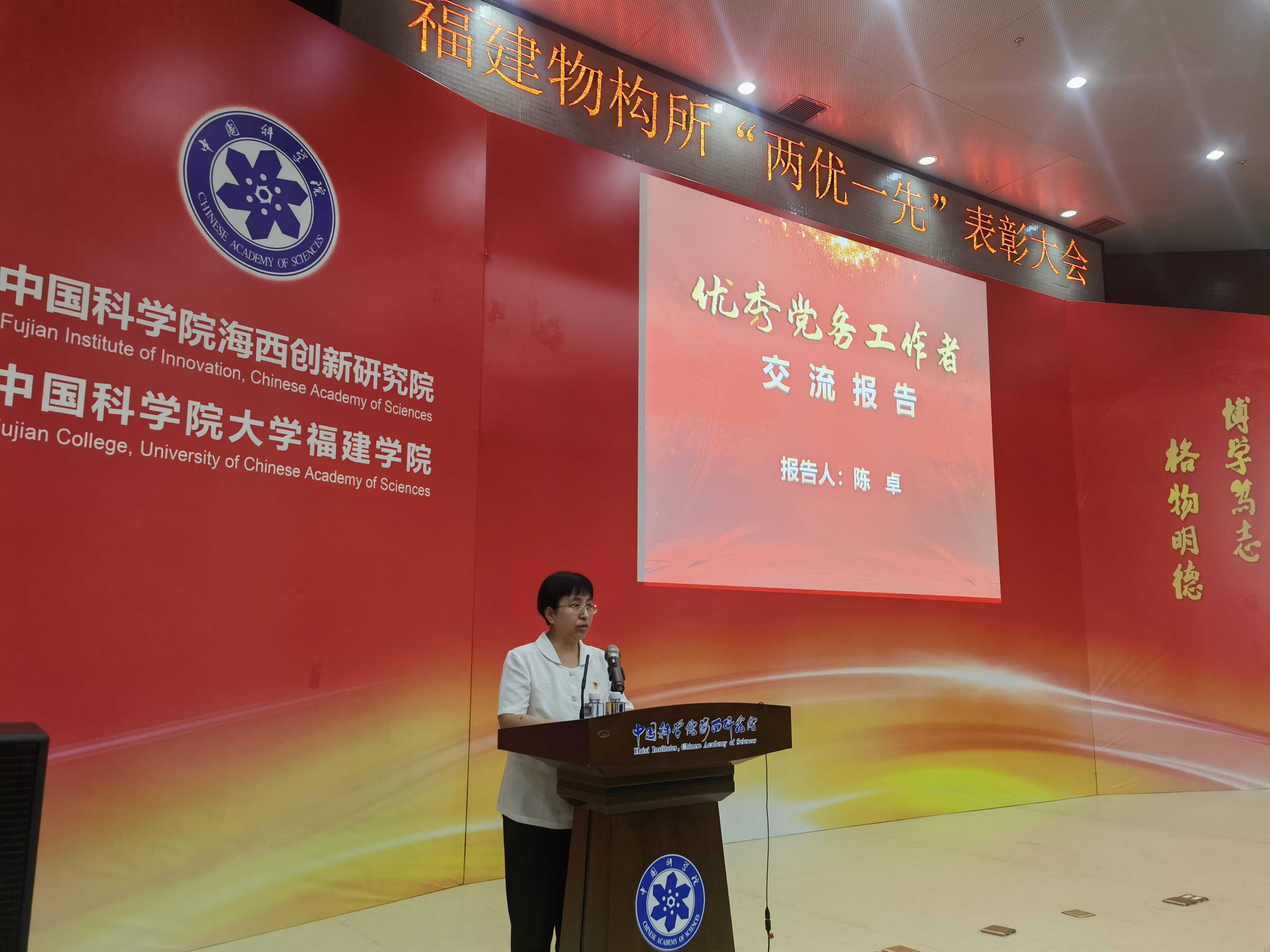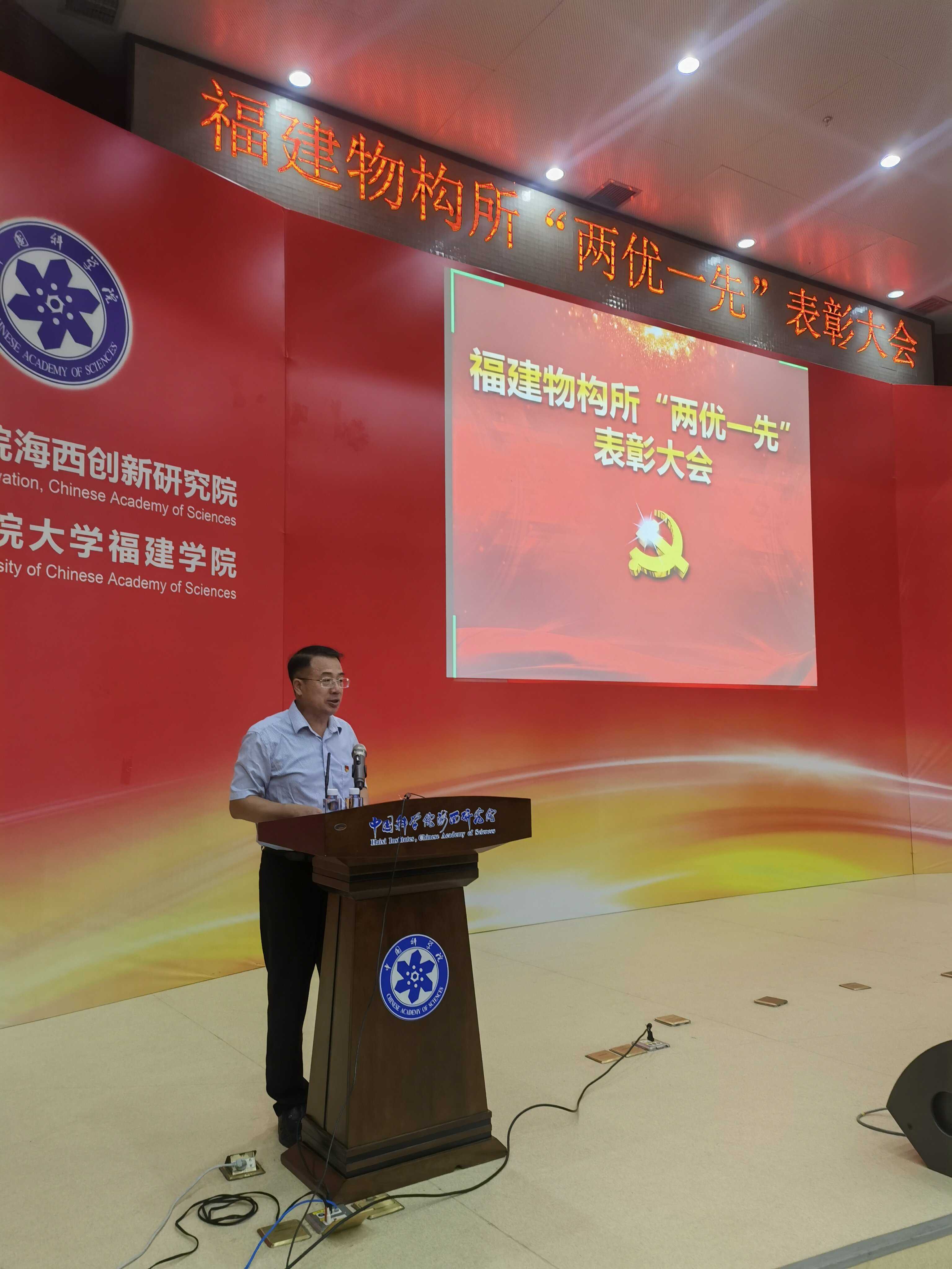 6月30日,中国科学院福建物质结构研究所在综合楼320报告厅召开“两优一先”表彰大会。在榕所领导林文雄、党委委员郑发鲲和近200名党员参会,会议由党委书记黄艺东主持。