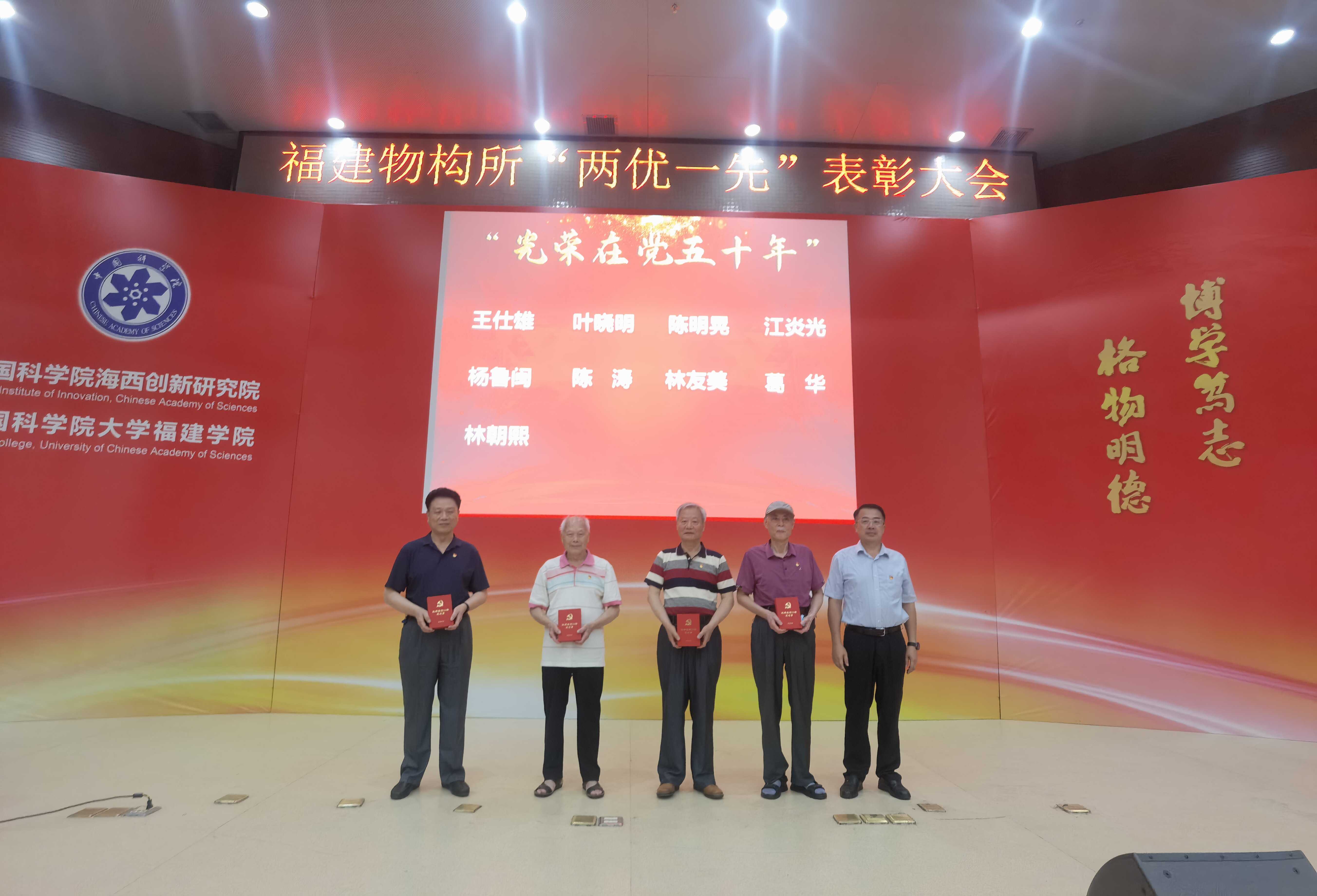 大会在庄严的国歌声中开幕,黄艺东致开幕词。他表示102年来,中国共产党之所以能够完成近代以来各种政治力量不可能完成的艰巨任务,就在于始终把马克思主义这一科学理论作为自己的行动指南,并坚持在实践中不断丰富和发展。当前,我们正在深入开展学习贯彻习近平新时代中国特色社会主义思想主题教育,就是要在主题教育中进一步武装思想,激发担当作为,积极发挥党员先锋模范作用。会议隆重为“光荣在党50年”的在所老党员颁发纪念章。党办主任李志华宣读了《中国科学院福建物构所关于表彰优秀共产党员、优秀党务工作者和先进基层党组织的决定》,授予物构中心第六党支部等10个党支部为“福建物构所先进基层党组织”,授予马冬冬等30人为“福建物构所优秀共产党员”,授予龙佩青等21人为“福建物构所优秀党务工作者”。所领导、党委委员依次为获得表彰的“两优一先”代表颁发证书并合影留念。
