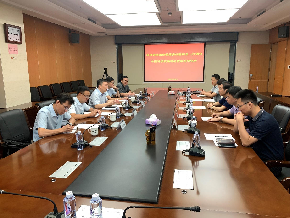 9月8日上午,福建省委组织部副部长、省委编办主任周青松一行到中国科学院福建物构所调研,福建物构所副所长林文雄及科技处、教育处、合作处、人力资源处等相关管理部门成员等一同参加调研。