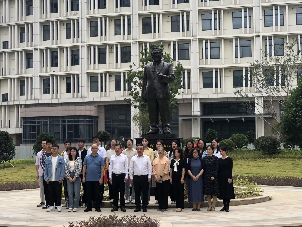 上午9点,活动正式开始。大家齐聚在卢先生铜像前,由研究生代表献上花篮,曹荣和卢灿忠整理缎带,全体人员向卢先生鞠躬致敬。随后卢葛覃女士和大家一起追忆卢先生的生平事迹,讲述了他的学术思想和科学精神,并勉励同学们继承先志、勤奋努力、勇于创新。