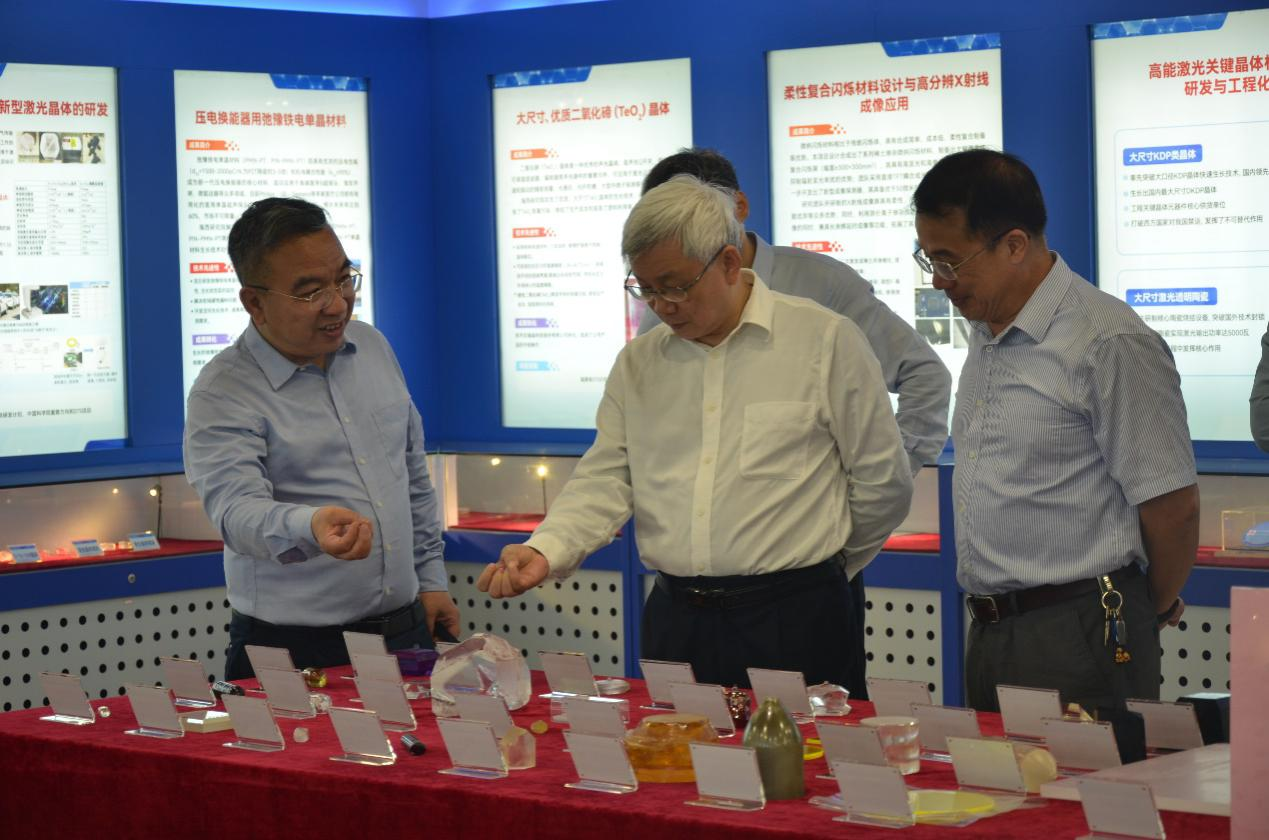 侯建国参观了福建物构所展厅,调研了结构化学重点实验室、极端增材制造实验室和大尺寸LBO晶体研发中心,与一线科研人员深入交流,仔细询问相关科研项目进展、重要仪器设备研制、实验平台建设和成果转化等情况,鼓励大家围绕国家重大战略需求,瞄准科技制高点潜心攻关,产出更多重大创新成果。