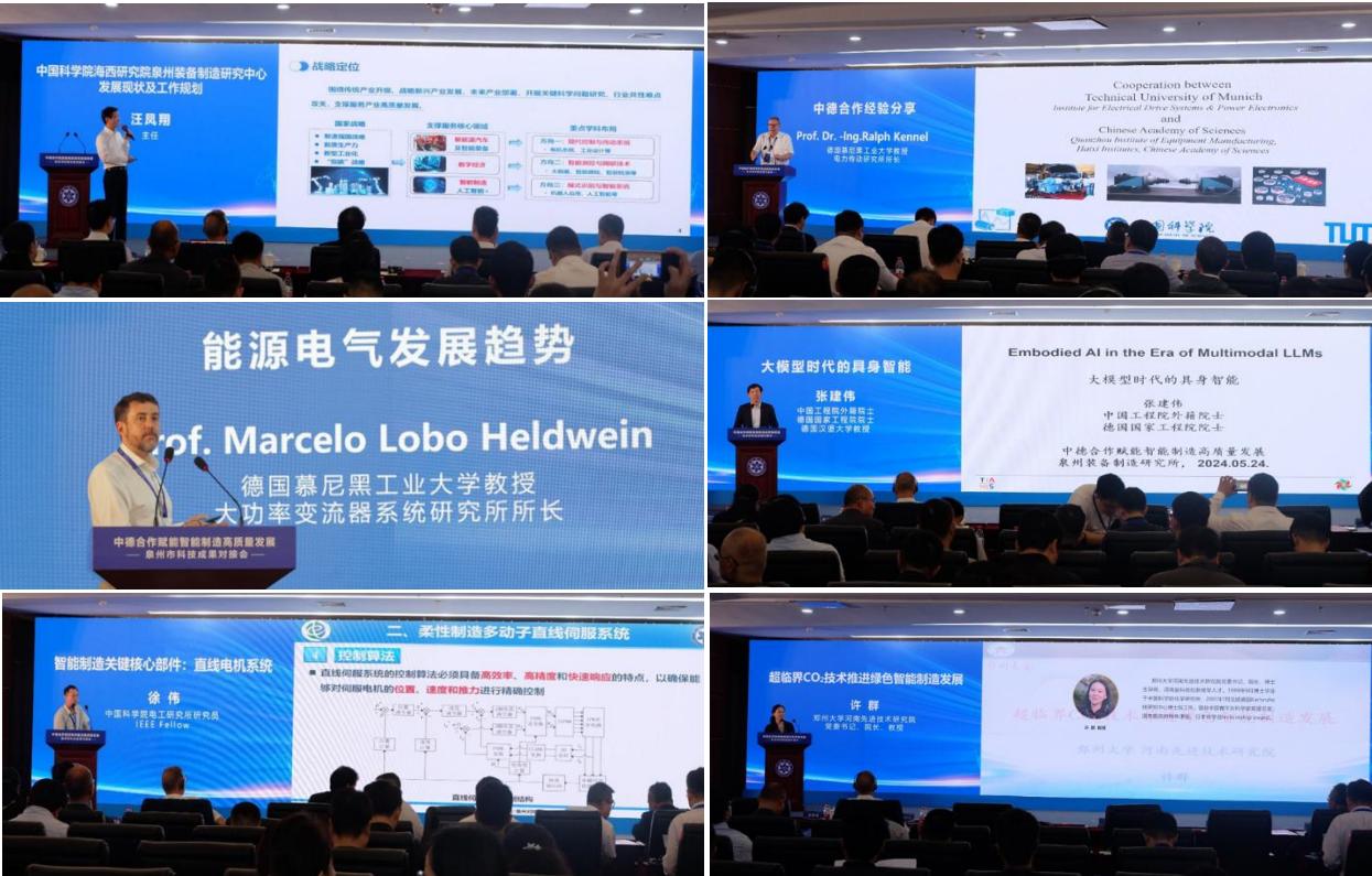 5月24日,由泉州装备中心牵头承办的“中德合作赋能智能制造高质量发展”泉州市科技成果对接会在泉州装备中心晋江园区举行。福建省科技厅副厅长陈虔、中国科学院福建物质结构研究所所长曹荣、泉州市政府副市长姚飞等领导到会指导。