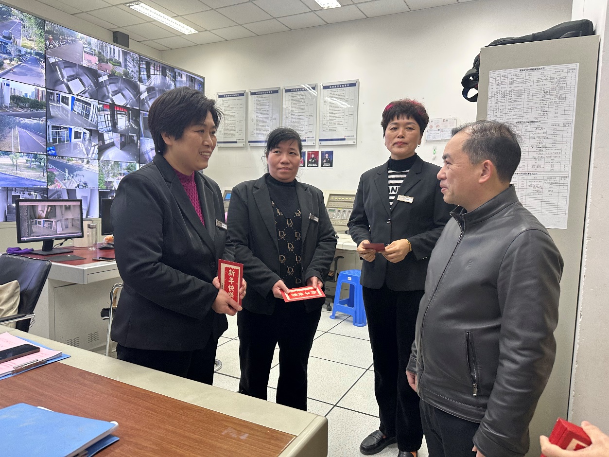 正值蛇年新春佳节到来之际,1月28日(除夕)上午,福建物构所党委书记、副所长张健带着关怀与温暖,看望慰问除夕各岗位值班值守人员,并巡查了两区消控中心、电房、保卫室等区域的运作情况,向坚守岗位的全体值班人员致以诚挚问候和新春祝福。