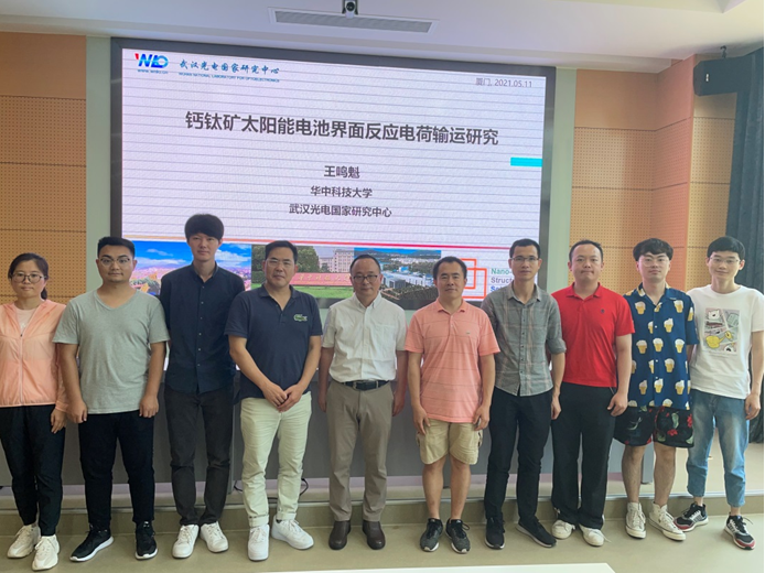 5月11日,华中科技大学武汉光电国家研究中心王鸣魁教授应中科院功能纳米结构设计与组装重点实验室邀请,作了题为《钙钛矿太阳能电池界面反应电荷输运研究》的学术报告,报告会由高鹏研究员主持。报告中,王老师重点介绍了如何调控界面上的电荷转移特性实现高效的钙钛矿太阳能电池。报告后,王老师还与厦门稀土所师生就如何平衡钙钛矿太阳能电池各自电荷层中电荷扩散过程、如何对界面进行功能性修饰从而避免能带弯曲对电荷载流子提取和传输过程的影响等问题进行了深入讨论,让在场师生受益匪浅。